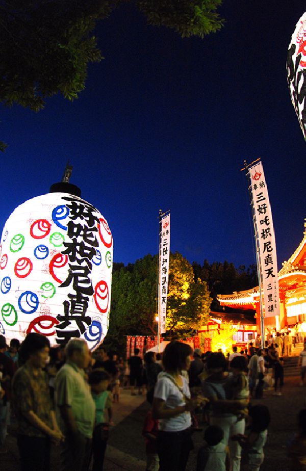 みよし市のほぼ中央にある三好稲荷閣で、毎年夏に行われる「三好大提灯まつり」。